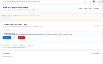 ADO Test Helper is een gratis browserextensie die is ontworpen om handmatige testprocessen binnen Azure DevOps te versnellen. Met deze tool kunnen gebruikers eenvoudig teststappen vastleggen met automatische screenshots, wat de documentatie en rapportage van testresultaten aanzienlijk vereenvoudigt. De extensie stelt gebruikers in staat om testgevallen direct te maken of bij te werken, zonder dat handmatige invoer nodig is, en biedt een directe manier om testresultaten in Azure DevOps in te dienen.